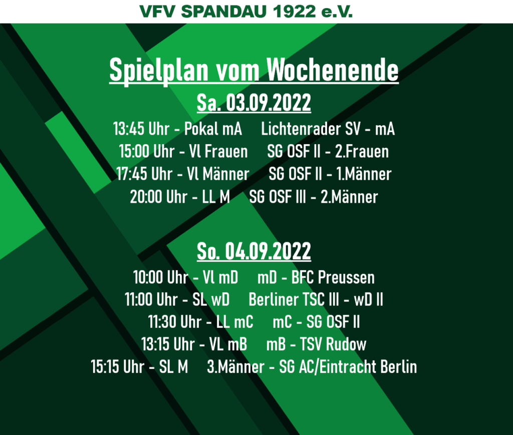 So spielen unsere Mannschaften am Wochenende 03/04.09.2022